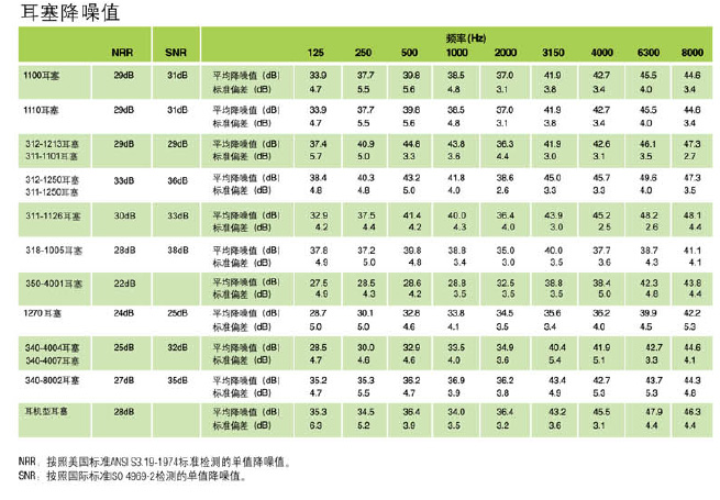 耳塞降噪值表 |
